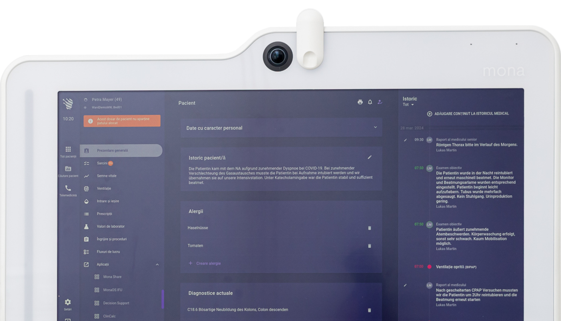 Mona este o soluție inteligentă care revoluționează modul în care lucrăm în secțiile de terapie intensivă! Cu o abordare inovatoare și tehnologie avansată, Mona aduce o serie de beneficii remarcabile pentru echipa medicală și pacienți.